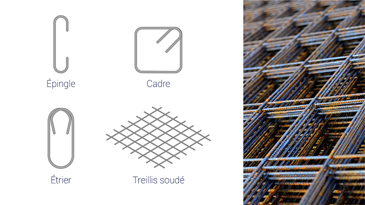 Les armatures métalliques en acier qui sont incorporées au béton peuvent être de différentes formes :