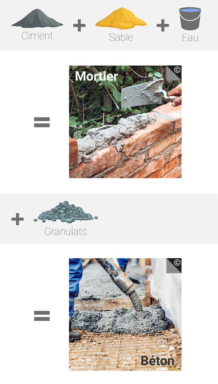 Il n’est pas toujours facile lorsque l’on débute en maçonnerie de faire la différence entre ciment, mortier et béton.