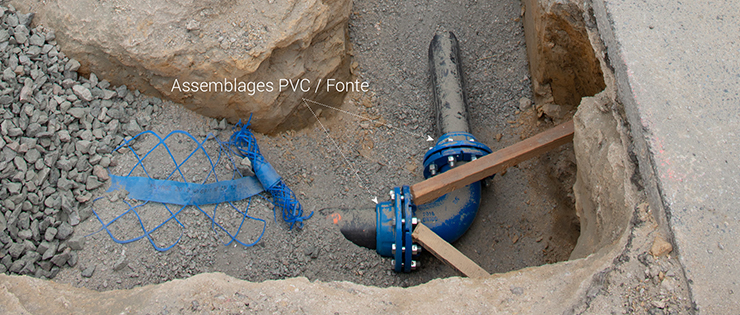 Les raccords enterrés s’assemblent aux tubes par bague de joint, bride ou tout autre système mécanique.