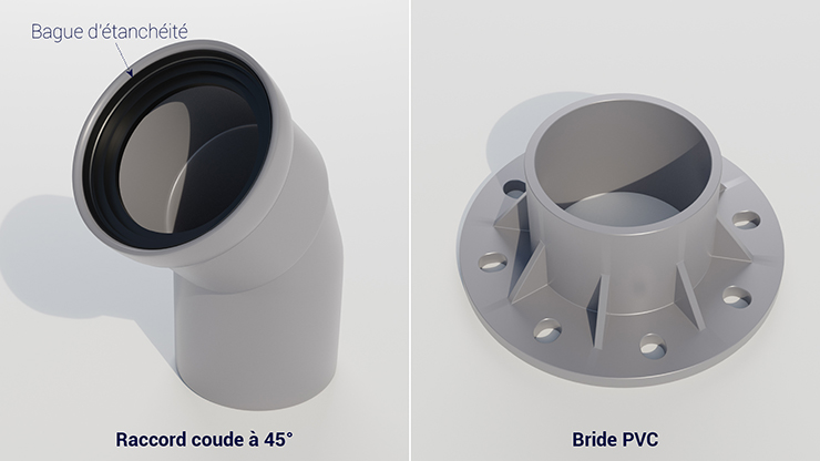 Les raccords PVC permettent de ramifier le réseau et d’y intégrer tous les points singuliers à savoir :
