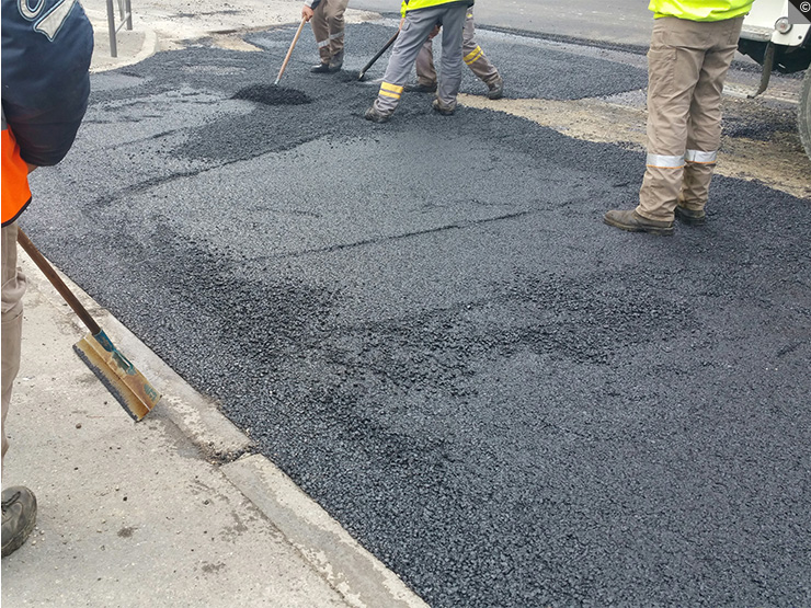 Les enrobés bitumineux tièdes ou chauds sont appliqués à l’aide d’un finisseur pour les grandes surfaces ou à la main pour des surfaces de petite taille, ou inaccessibles.