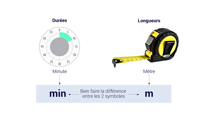On notera que le symbole officiel utilisé pour minute est « min » et non « m » qui est le symbole du mètre.