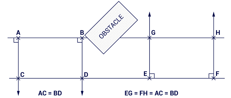 - soit l’obstacle est infranchissable et il faut alors le contourner par l’intermédiaire d’un alignement parallèle