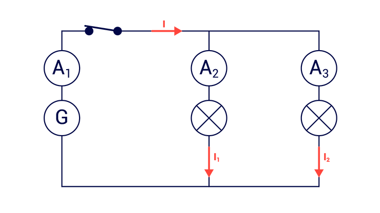 Énoncé : Dans un circuit en dérivation, la valeur de l’intensité délivrée par le générateur dans la branche principale est égale à la somme des intensités qui circulent dans chaque branche secondaire.